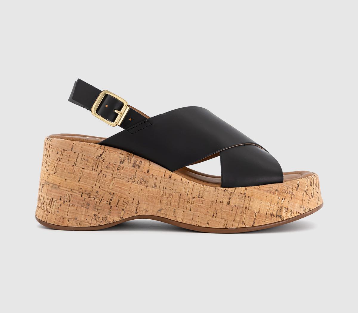 Womens OFFICE Mojito Cross Over Cork Wedge Heels Black
